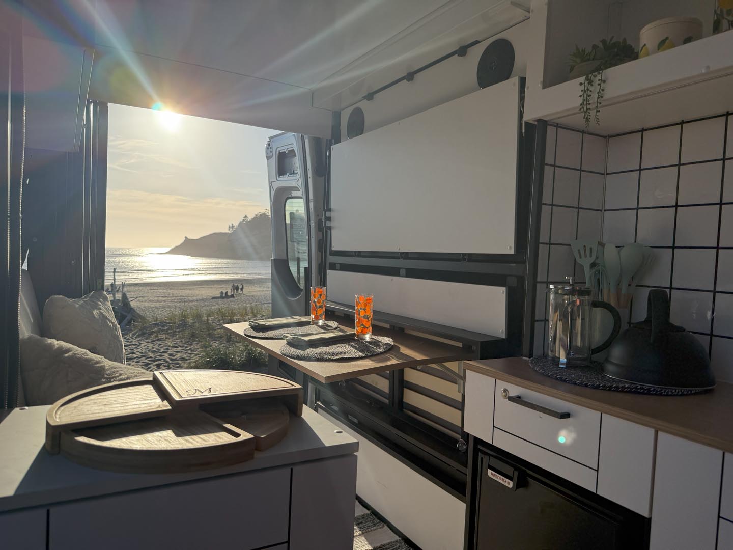 Our skilled technicians take care of every detail, from cabinetry and wiring to plumbing and finishing, ensuring durability, functionality, and a polished look. All you need to do is slide the kit into place. If that feels like too much, and your van is located near Portland, Oregon, we’re happy to assist with the installation for an additional fee. Feel free to contact us for more details about our installation services!