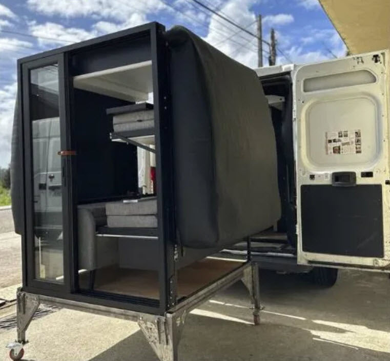 For added comfort and privacy, consider our sliding glass door option, installed at the side and rear entrances. This feature allows you to keep your van doors open while staying protected from the elements, enjoying natural light, or adding an extra layer of security. If the glass doors are not selected, the space will be open once the van doors are opened.
