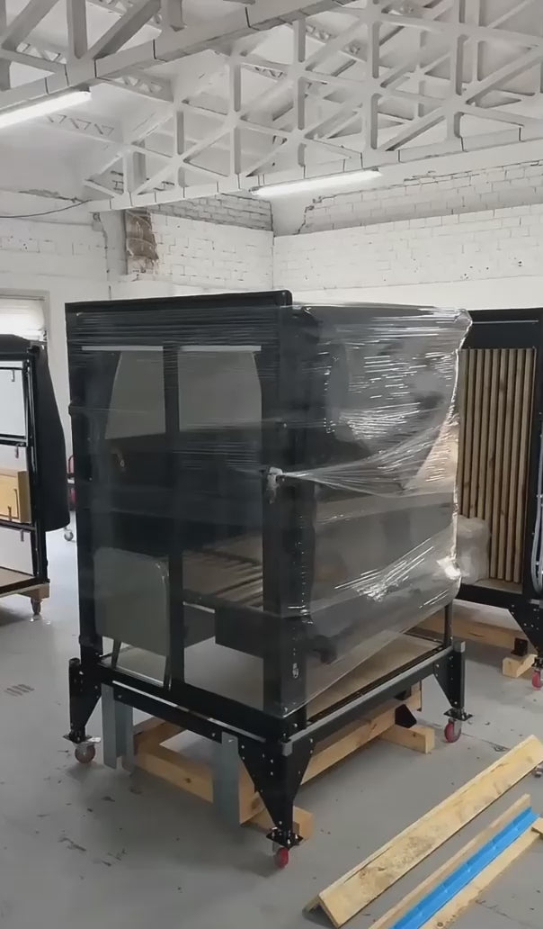 Upon delivery, the first thing you will notice is how nearly everything comes assembled! After unpacking the exterior padding, the included installation sled will allow the box to be placed behind your Ford Transit van, where the conversion kit will be placed on the sled, and pushed into the van within minutes. The kit comes in two pieces, each that weigh approximately 300-500lbs. Having multiple people help unload and push into place is recommended.