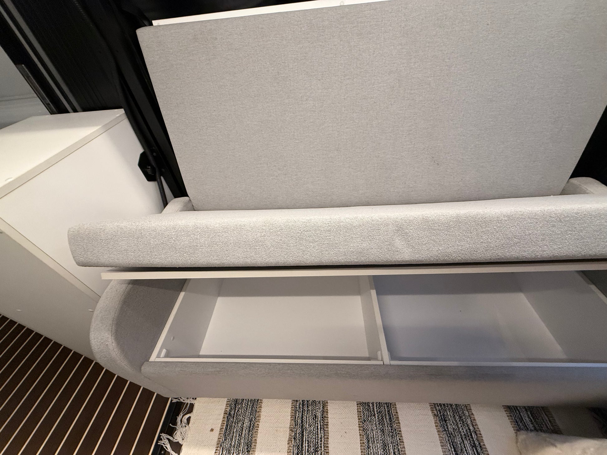 We've done the 99% of the work for you! The streamlined installation process and included mounting hardware make it easy to customize while maintaining solid structural integrity. Once the two kits are installed into the van and fitted into place, they will expand outwards towards the edge of the walls, maximizing the interior space, providing a perfect fit for your vehicle. All cabinetry, walls, couches, etc. come assembled so all that is required is a flat flooring surface to install the boxes into. This can be as simple as providing a cut plywood floor for your vehicle.